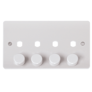 Click Scolmore MiniGrid Mode 4 Gang Double Dimmer Plate & Knobs White - CMA148PL