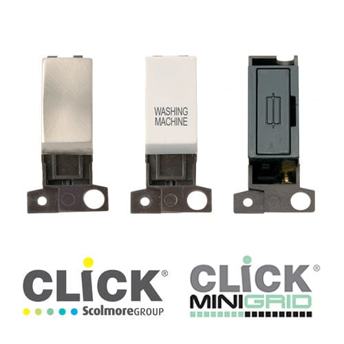 Click Scolmore MiniGrid 13A Resistive Double-Pole Switch Module Polar White - MD018PW