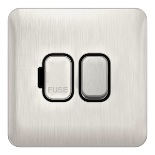 Schneider USFP 13A Double Pole 1G Switched Socket W/N Black Insert - Stainless Steel - GU3411DBSS