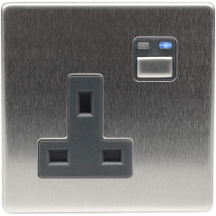 BG Evolve Matt Grey Single Switched 13A Power Socket + 2 X USB (2.1A) - PCDMG21U2B
