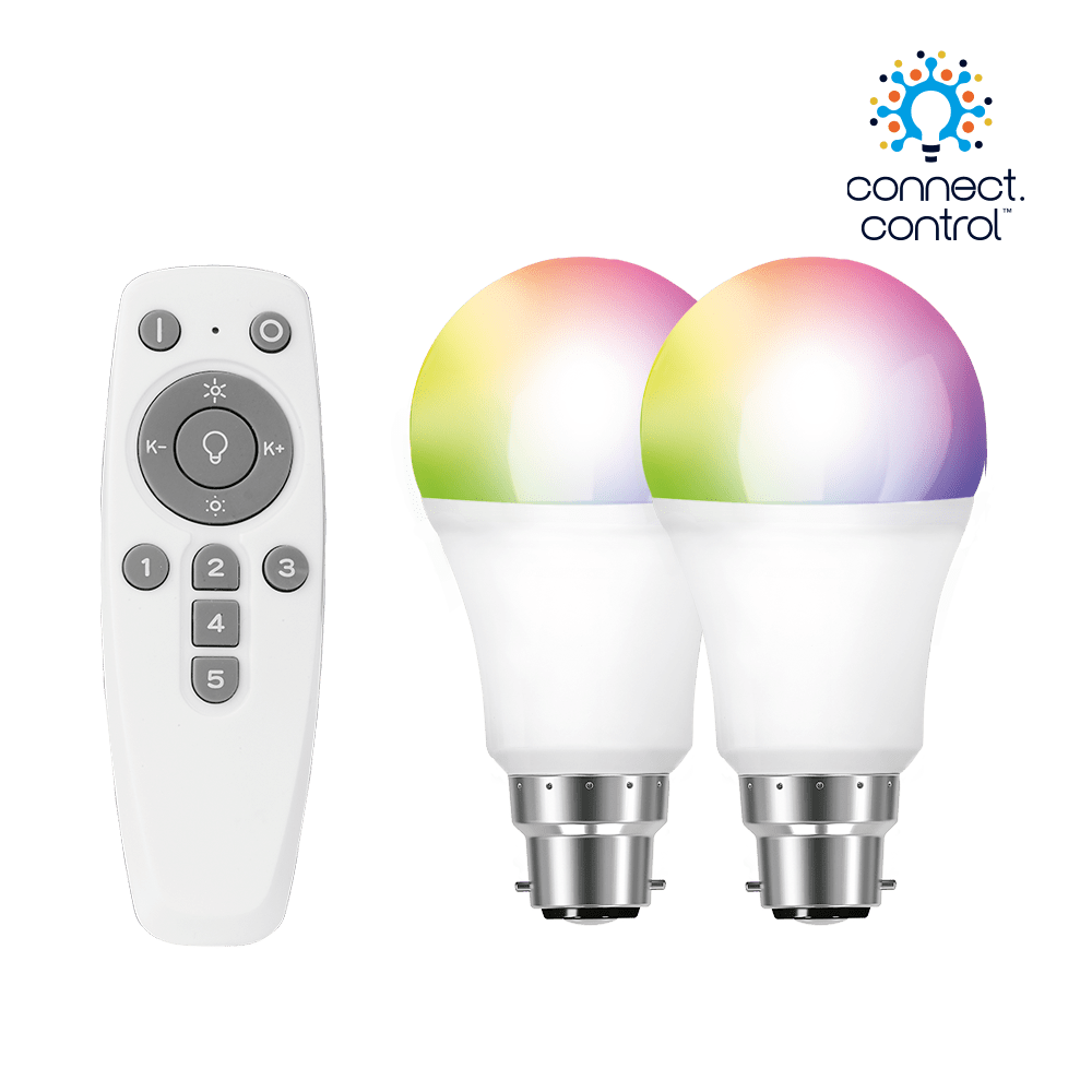 Aurora Bluetooth Smart Kit C/W 2x 8W B22 GLS Dimmable RGBCX LED Lamps and Remote - AU-A1BTGBCWK