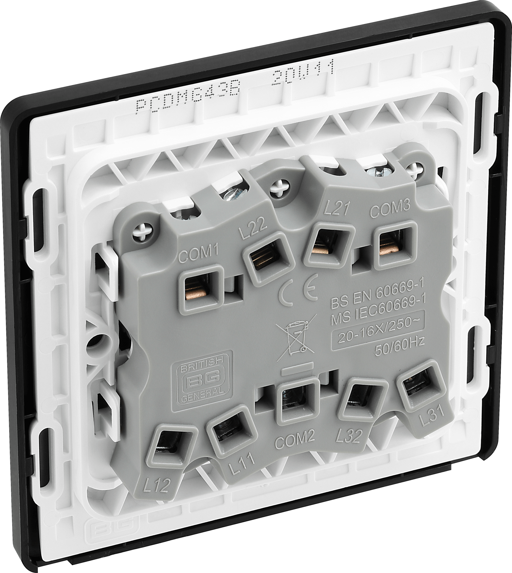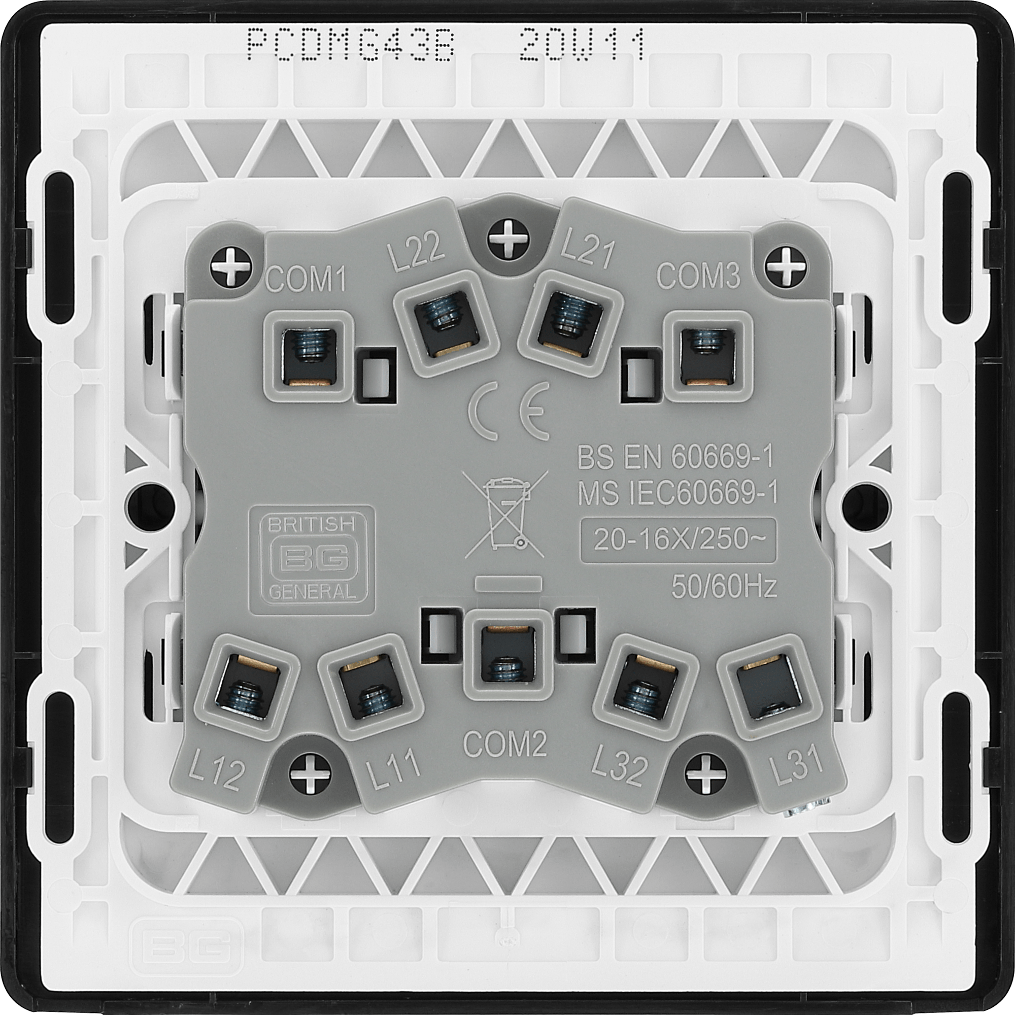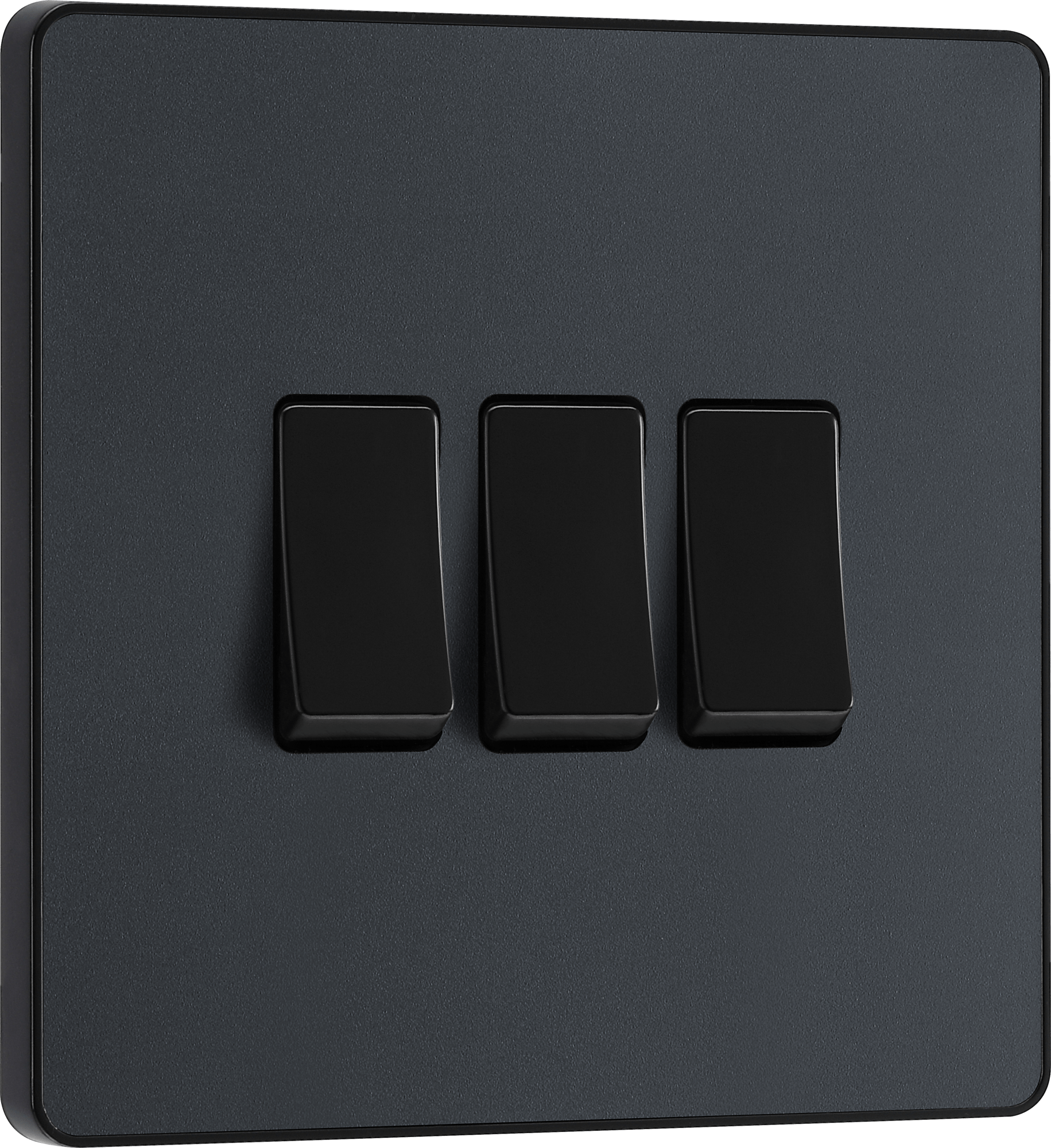 BG Evolve Matt Grey Triple Light Switch 20A 16Ax 2 Way - PCDMG43BThe BG Evolve range is a new generation of decorative modern wiring devices, available in a range of colours and finishes. These contemporary switches and sockets are designed with a slim, screwless profile and are perfect for any domestic or commercial application.