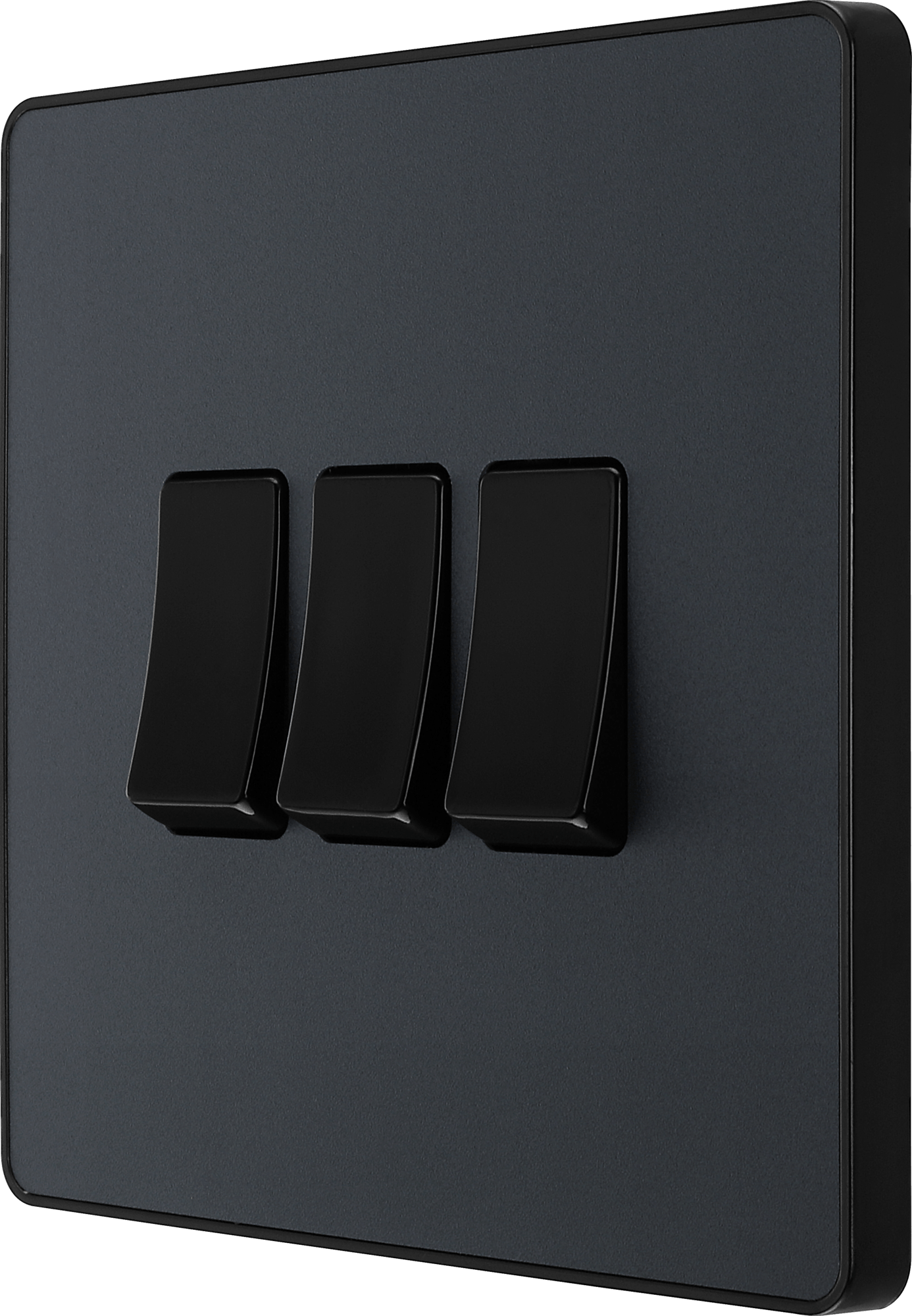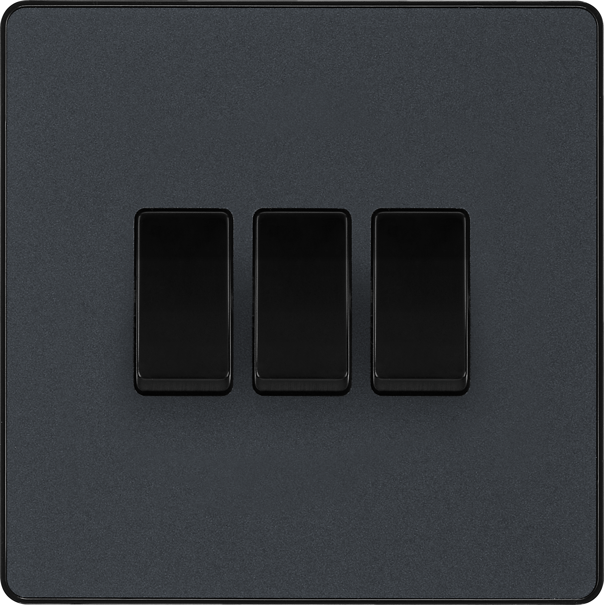 BG Evolve Matt Grey Triple Light Switch 20A 16AX 2 Way - PCDMG43B