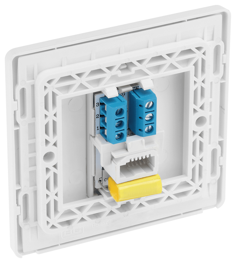 BG Evolve Pearl White Single Secondary Telephone Socket - PCDCLBTS1WThe BG Evolve range is a new generation of decorative modern wiring devices, available in a range of colours and finishes. These contemporary switches and sockets are designed with a slim, screwless profile and are perfect for any domestic or commercial application.