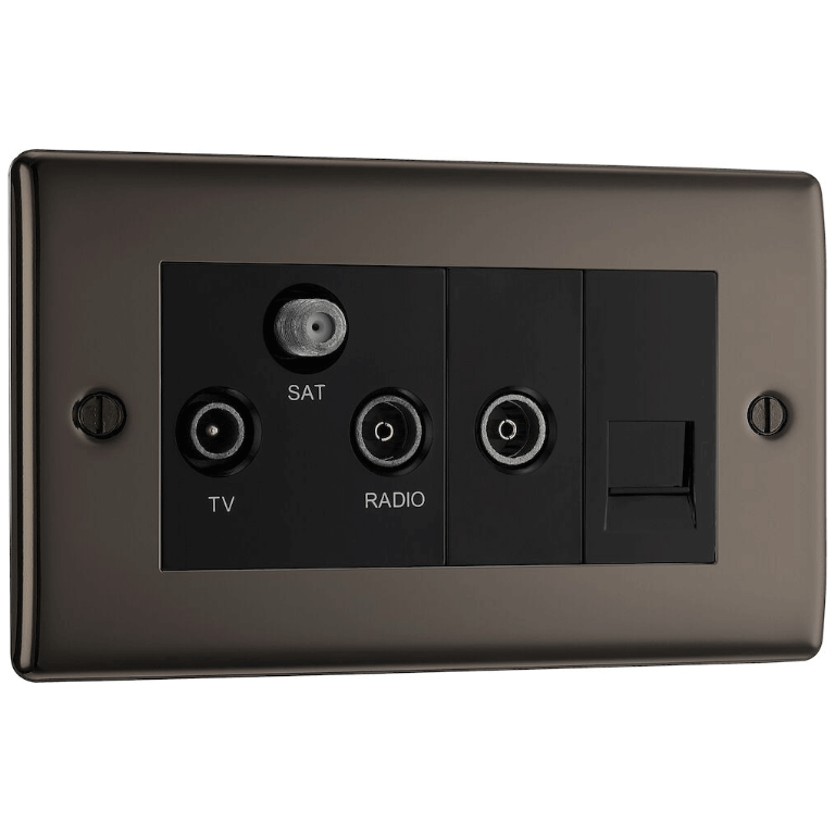BG Nexus Metal Black Nickel Triplex Tv/Fm/Sat+Ret, 1G Tel Scrd - NBN68