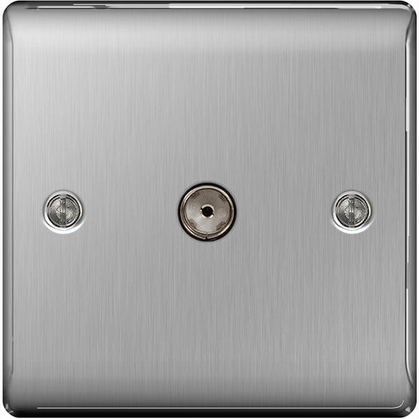 BG Nexus Metal Brushed Steel Single Socket For Tv Or Fm Co-Axial Aerial Connection - NBS60