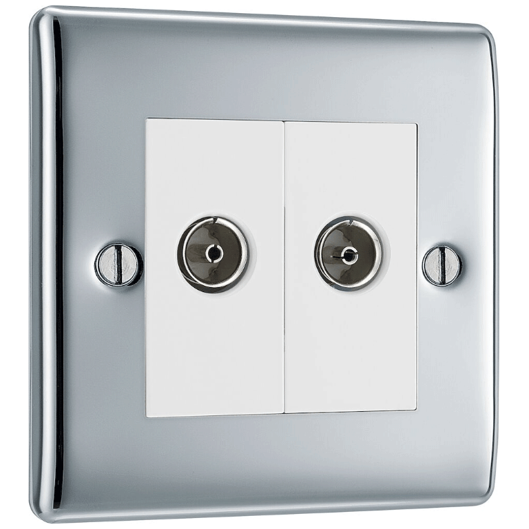 BG Nexus Metal Isolated Double TV Aerial Socket - White Insert - Polished Chrome