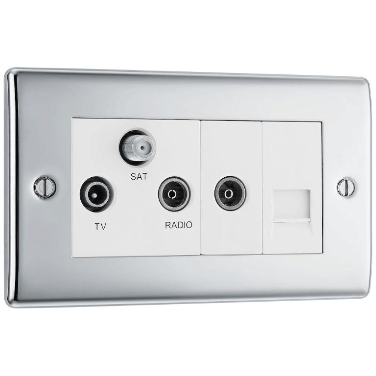 BG Nexus Metal Polished Chrome Triplex Tv/Fm/Sat+Ret, 1G Tel Scrd - NPC68