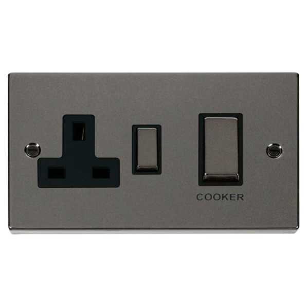 Click Scolmore Deco Ingot 45A Cooker Switch Unit with 13A 2 Pole Switched Socket - VPBN504BK