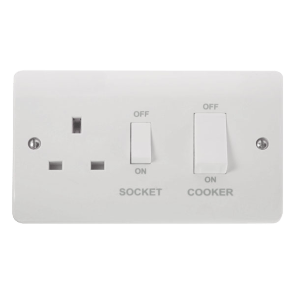 Click Scolmore Mode 45A 1 Gang Cooker Switch & Plug Socket Polar White - CMA504