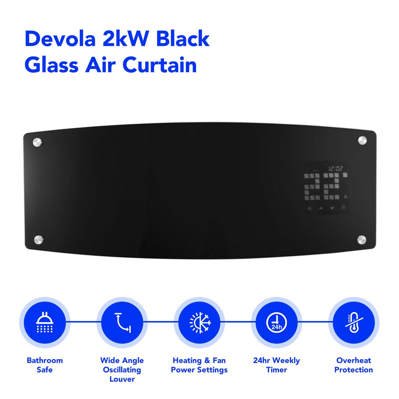 Devola 2kW Glass Panel Air Curtain Black - DVSH20B - Return Unit