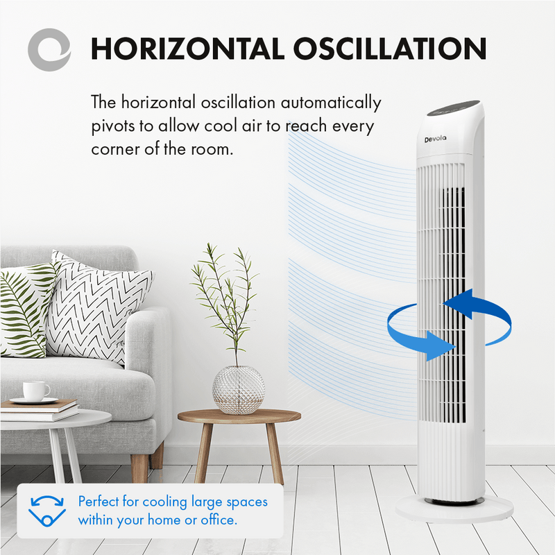 This stylish slimline tower fan provides an immediately benefitting fresh flow of air while being able to be slotted into any space or corner of the room. Measuring just less than 1m in height this quiet fan is suitable to fit into any office or bedroom to provide instant cooling power.