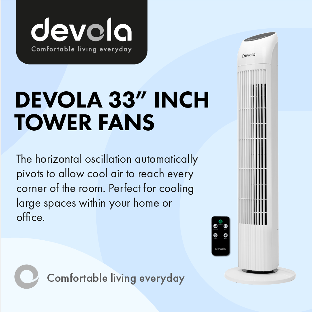 Devola 45W 3 Speed 33-inch Tower Fan With Remote - White - DV33TFWH - Return Unit