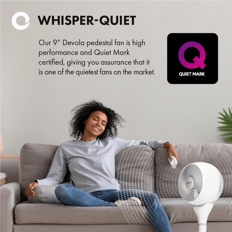 Small, strong and near-silent, the 9” Devola pedestal fan has every base covered when it comes to all of your fan-related needs.