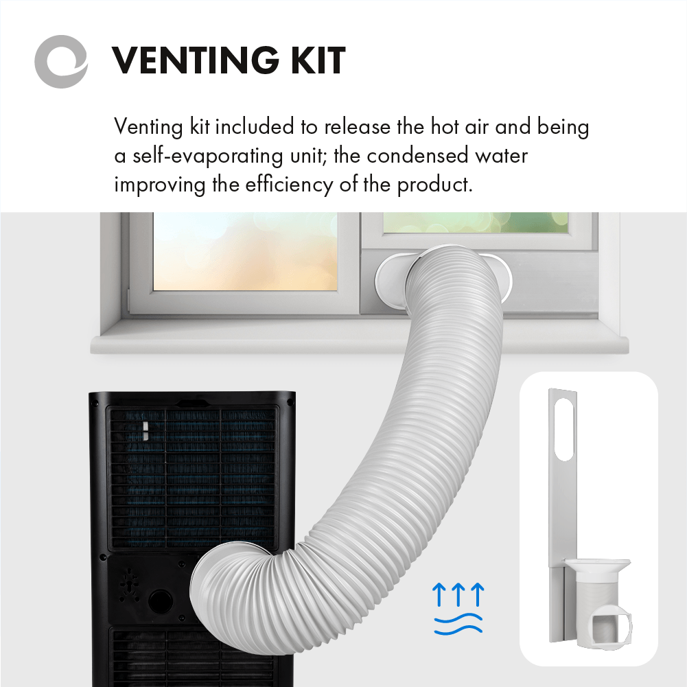 FEATURES: Including 150mm diameter ducting and a window kit, this air conditioner can easily be vented out of a window and measuring (H)700x348(D)x(W)350mm & 24kg this air conditioner can fit in any space to help bring comfort and freshness.
