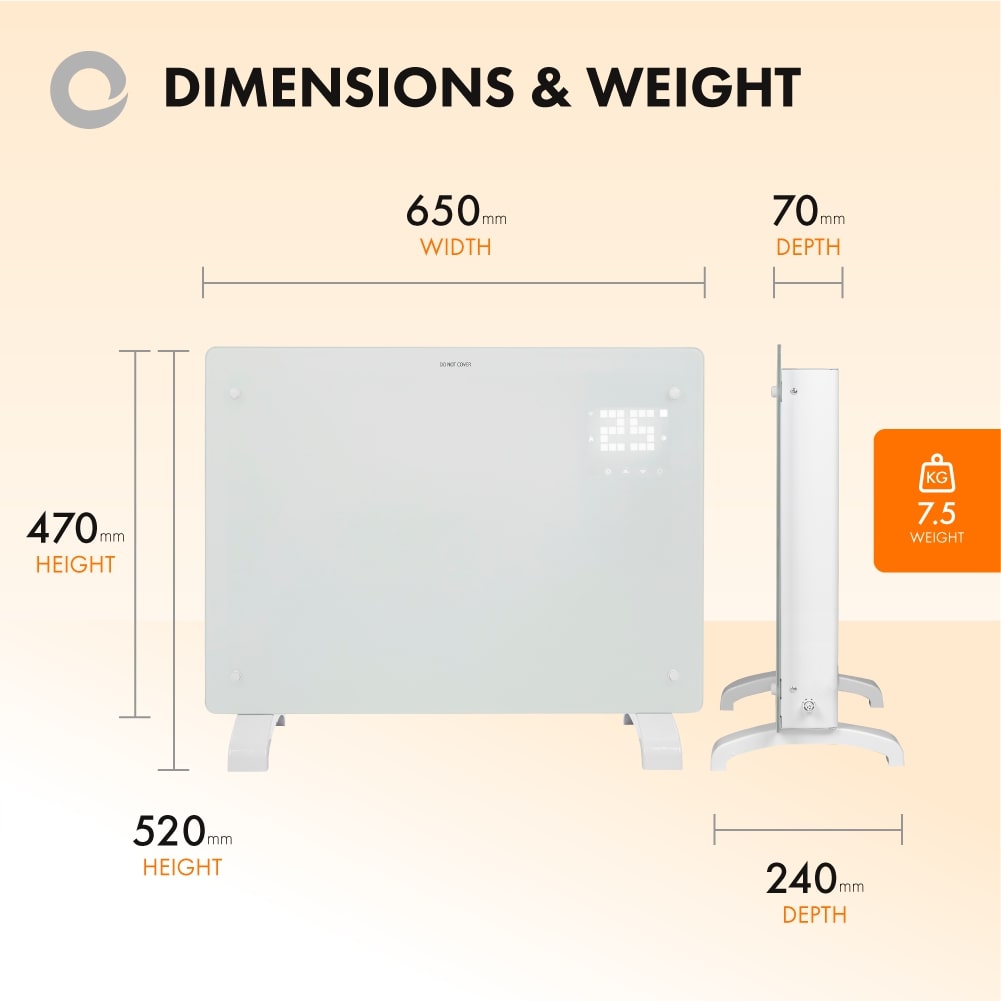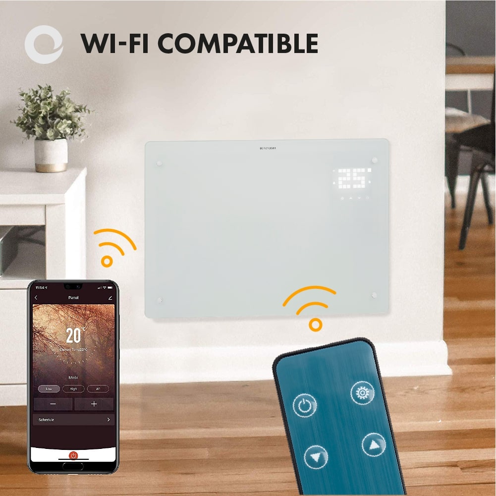 Devola Designer 1.5kW Smart Glass Panel Heater with Timer White - DVPW1500WH