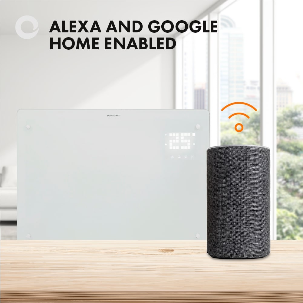 This Devola 1.5kW glass panel heater is one of the most technically advanced models on the market. Boasting a Wi-Fi connectivity function, it can be used in accordance with various smart home devices and applications. It has a contemporary slimline profile and can complement any room with its tempered glass housing and modern LED display (which can be switched off if required).
