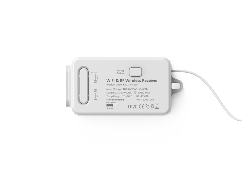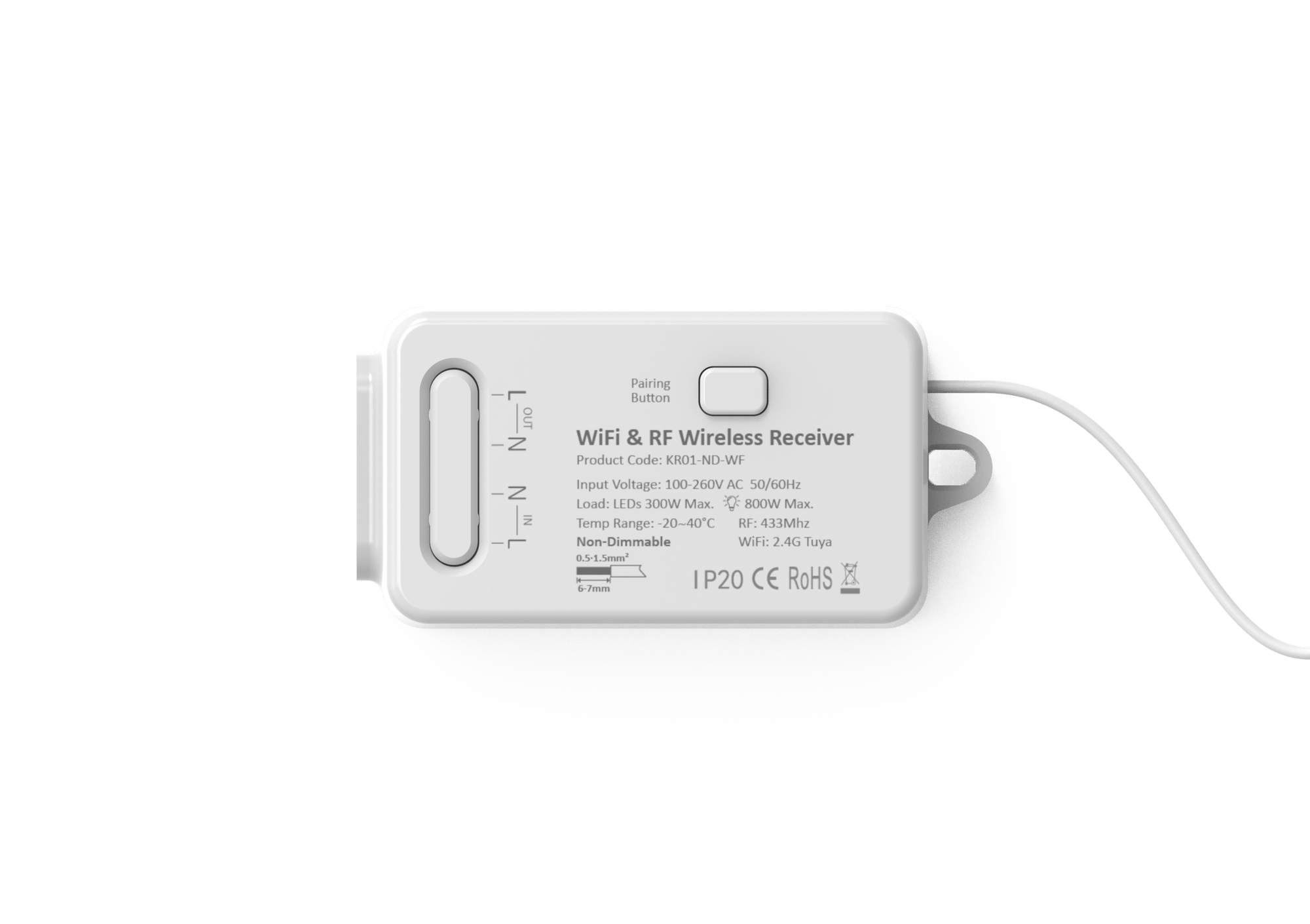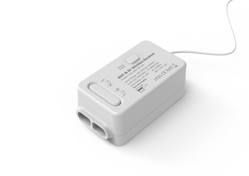 The CUL-40039 is a single channel Wi-Fi relay switch receiver which is a completely wireless switching system that converts kinetic energy produced by physically switching the switch into electrical energy to control your lights via remote switch and receiver. It's compact design makes it easy to install almost anywhere.