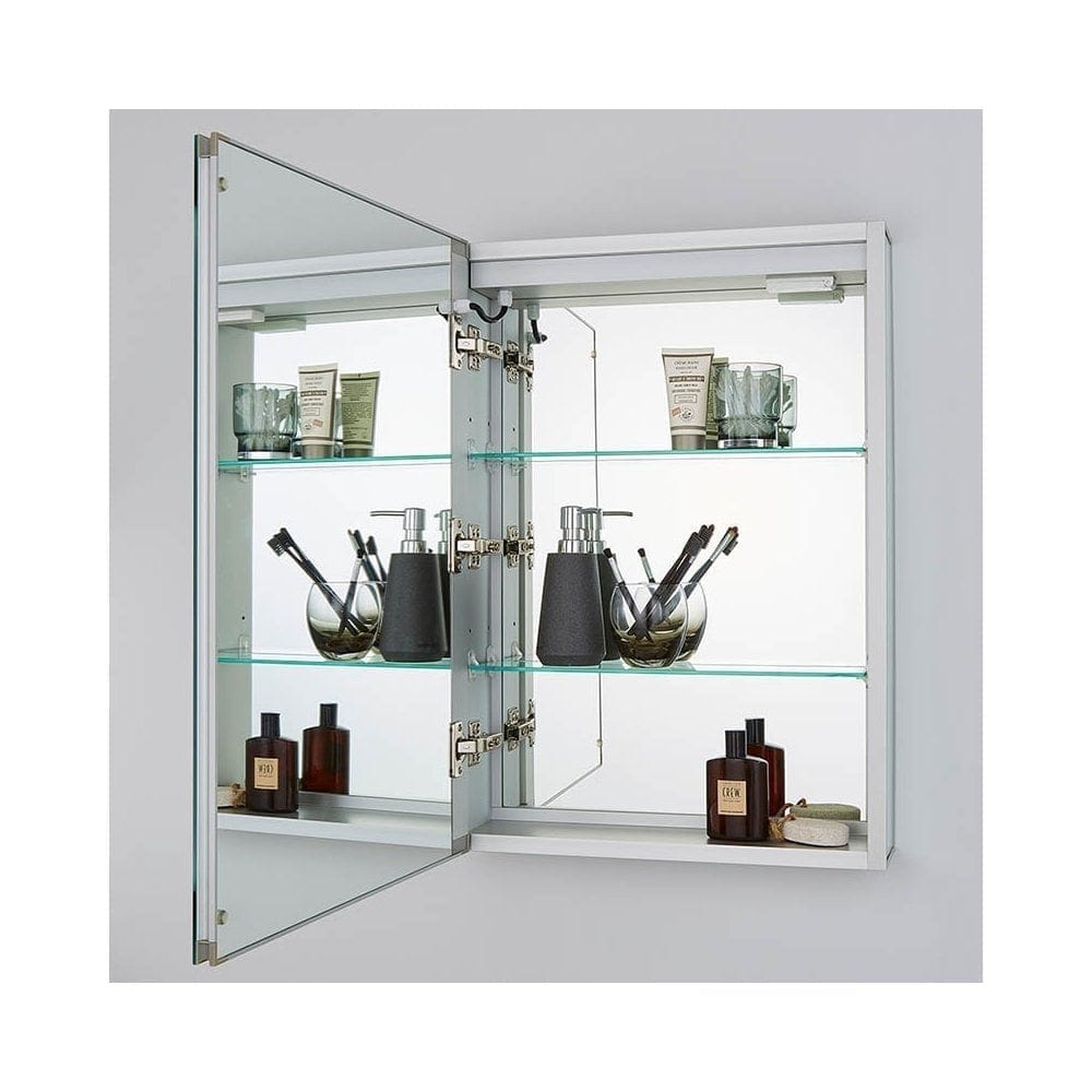 Equipped with a soft-close hinged single door, the SPA-35707 Arte ensures quiet and smooth operation. The internal mirrors and adjustable tempered glass shelves provide versatile storage options, allowing you to organize your bathroom essentials efficiently. The built-in demister pad keeps the mirror clear of condensation, ensuring a fog-free reflection even after hot showers. Additionally, the cabinet includes a convenient shaver socket and a touch sensor on/off switch for added functionality.