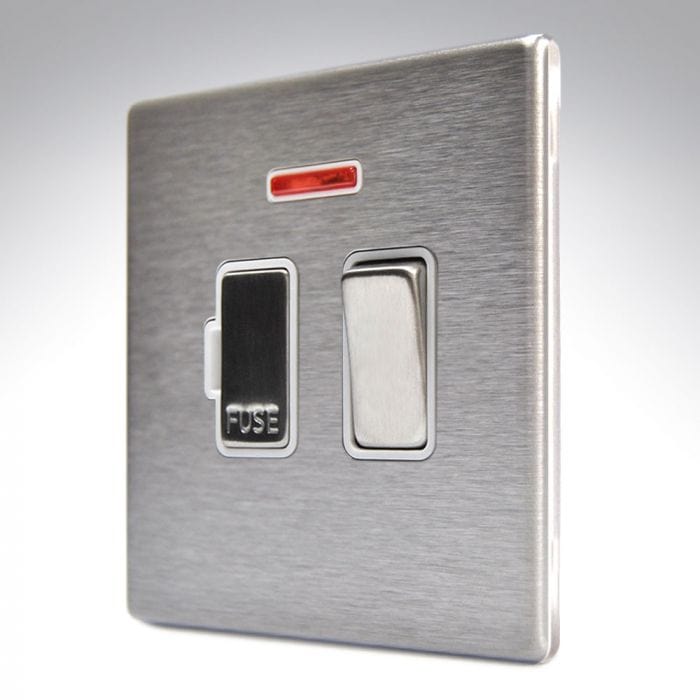 Hamilton Hartland CFX 13A 1 Gang Switched Fused Spur with Neon - Satin Steel with White Insert - 74CSPNSS-W