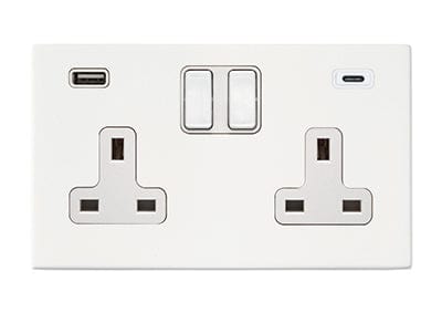 Hamilton Hartland G2 13A 2 Gang Screwless Type A/C USB Socket with 2 x USB - 4.8A - Matt White/White - 7G2MWSS2USBCWH-W