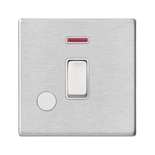 Hamilton Hartland G2 20AX 1 Gang Screwless DP Switch with Neon & Flex Outlet - Satin Steel/White - 7G24DPNCSS-W