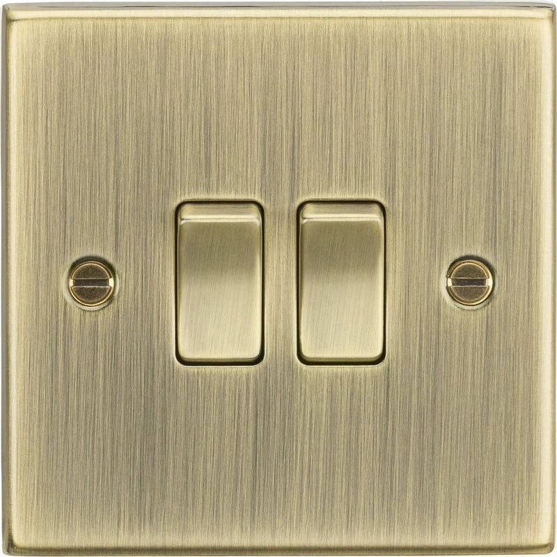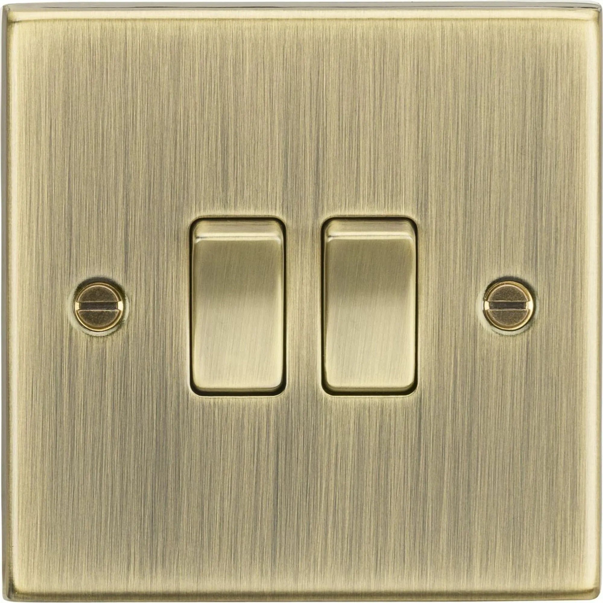Knightsbridge 10AX 2G 2 Way Plate Switch - Square Edge Antique Brass - CS3AB