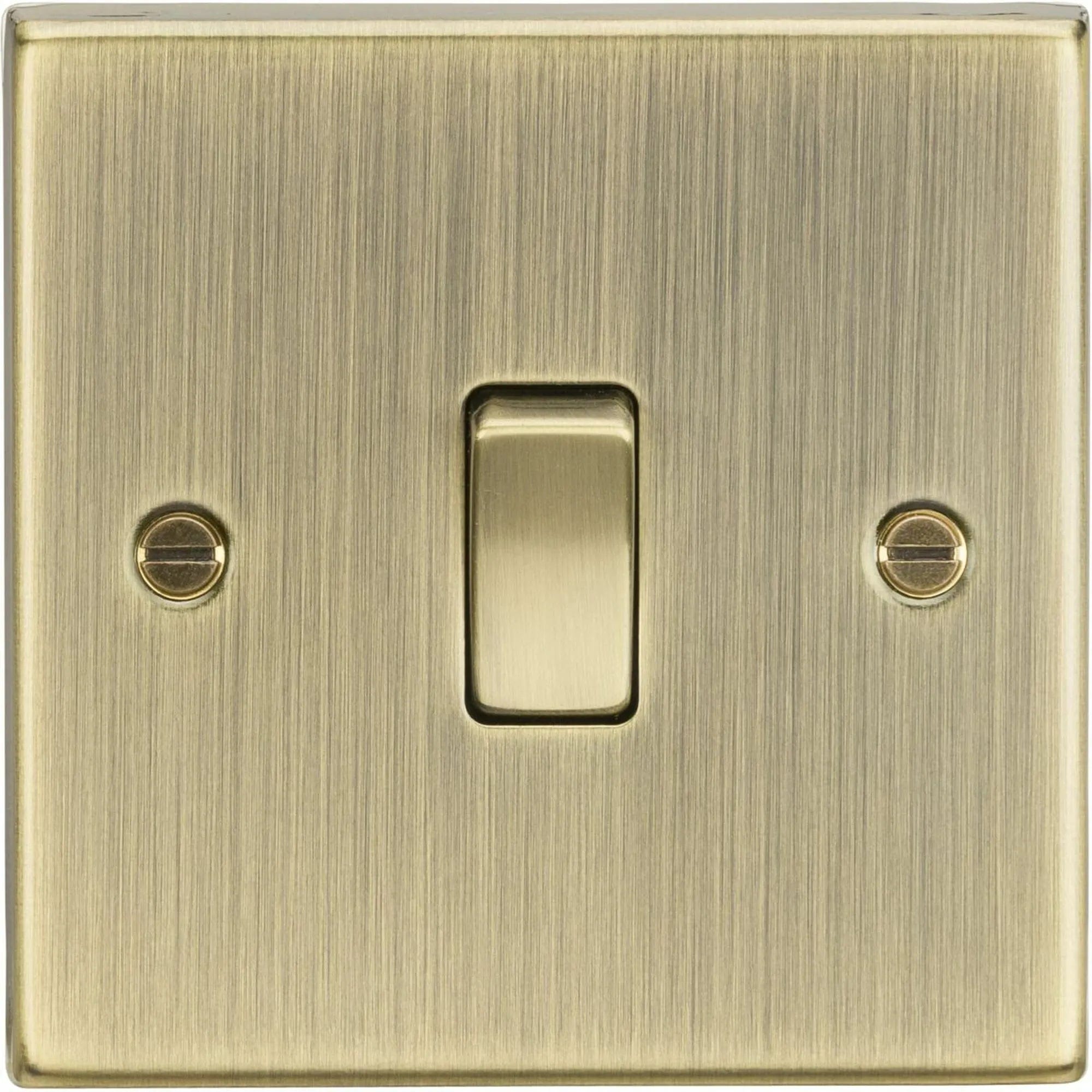 Knightsbridge 20A 1G DP Switch - Square Edge Antique Brass - CS834AB