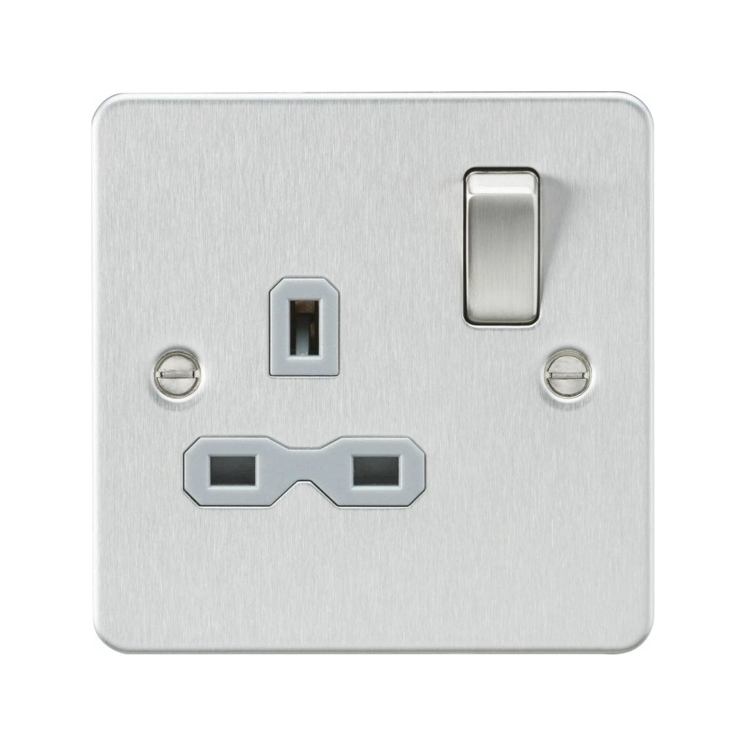 Knightsbridge Flat plate 13A 1G DP switched socket - brushed chrome with grey insert - FPR7000BCG