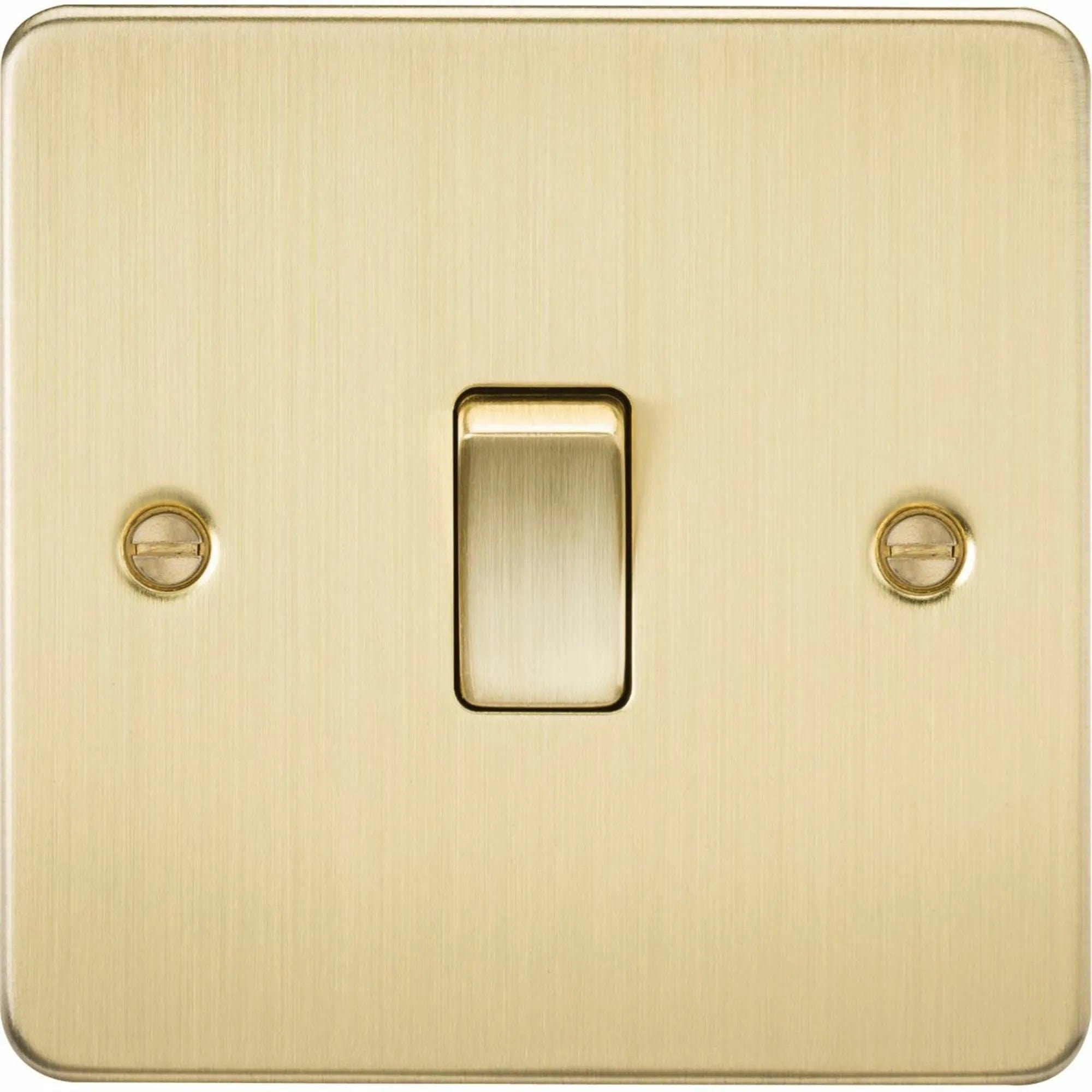 Knightsbridge Flat Plate 20A 1G DP switch - brushed brass - FP8341BB