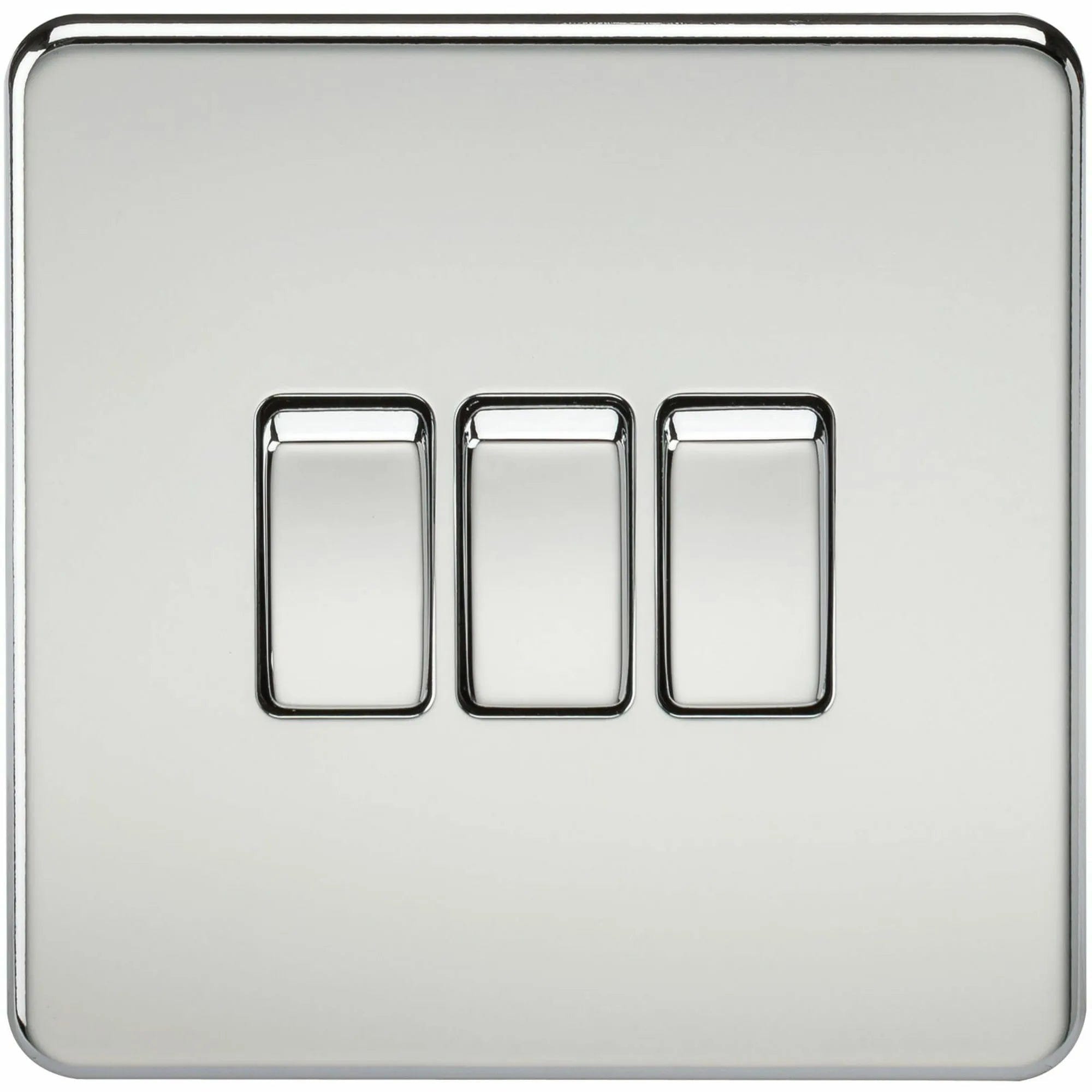 Knightsbridge Screwless 10AX 3G 2-Way Switch - Polished Chrome - SF4000PC