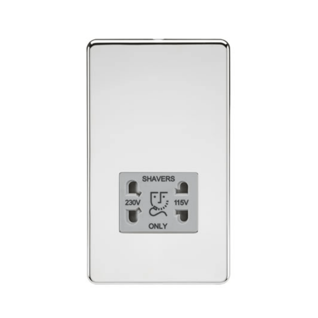 Knightsbridge Screwless 115/230V Dual Voltage Shaver Socket - Polished Chrome with Grey Insert - SF8900PCG