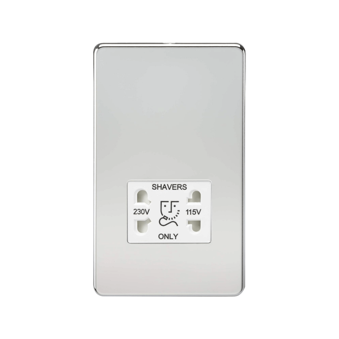 Knightsbridge Screwless 115V/230V Dual Voltage Shaver Socket - Polished Chrome with White Insert - SF8900PCW
