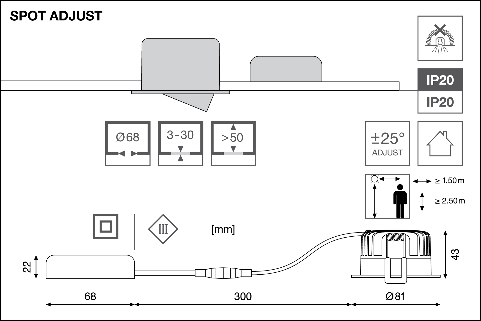 Ledvance SPOT ADJUST 8W IP20 Dimmable Downlight Black, Warm White - 799684 - SAD08D30B