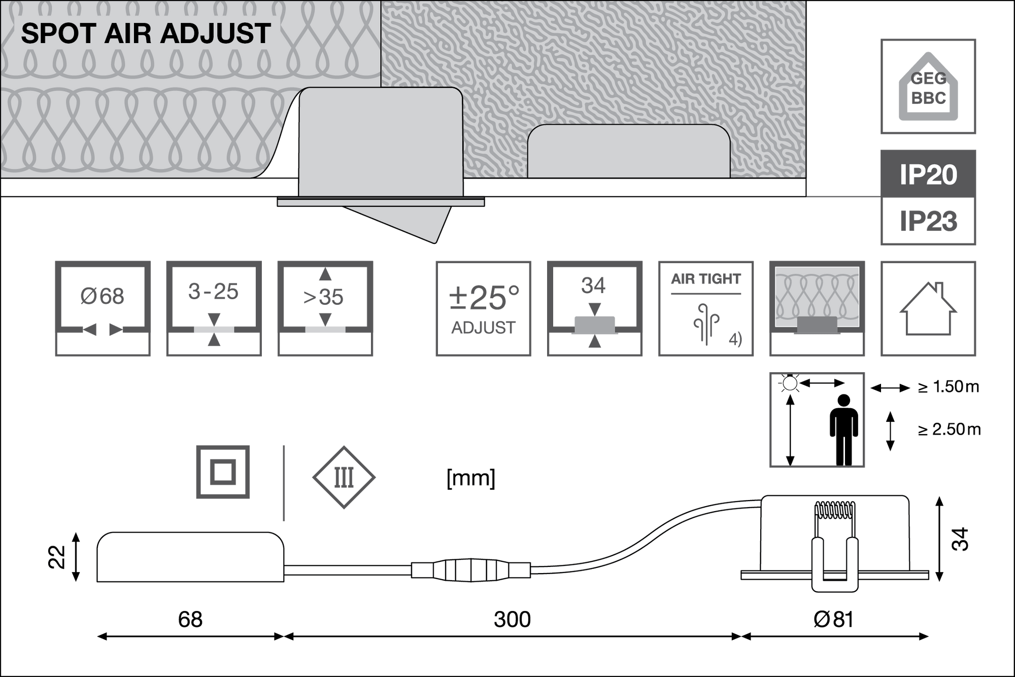Ledvance SPOT AIR ADJUST 4W IP23 Dimmable Downlight Black, Warm White - 000089 - SAA04D30B