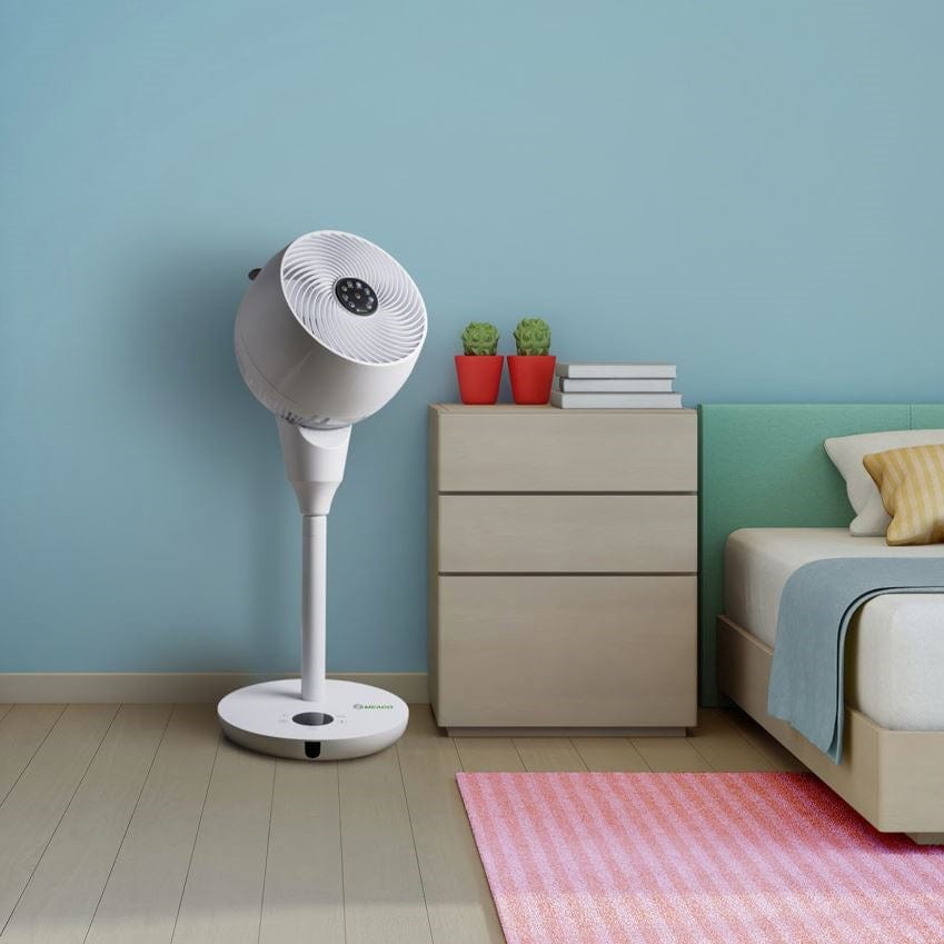 A new spin on a best-sellerThis fan takes all the features and benefits of Meaco's award-winning desk-top fan and puts them into a sturdy and attractive pedestal that can be moved from room to room and cool the air without taking up table space. Just like the original 1056, the pedestal fan is super-quiet, circulating the air within your room efficiently and effectively.