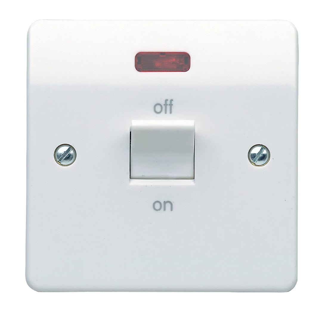 MK Logic Plus 32A 1 Gang Double Pole Appliance Switch with Neon - White - K5105WHI