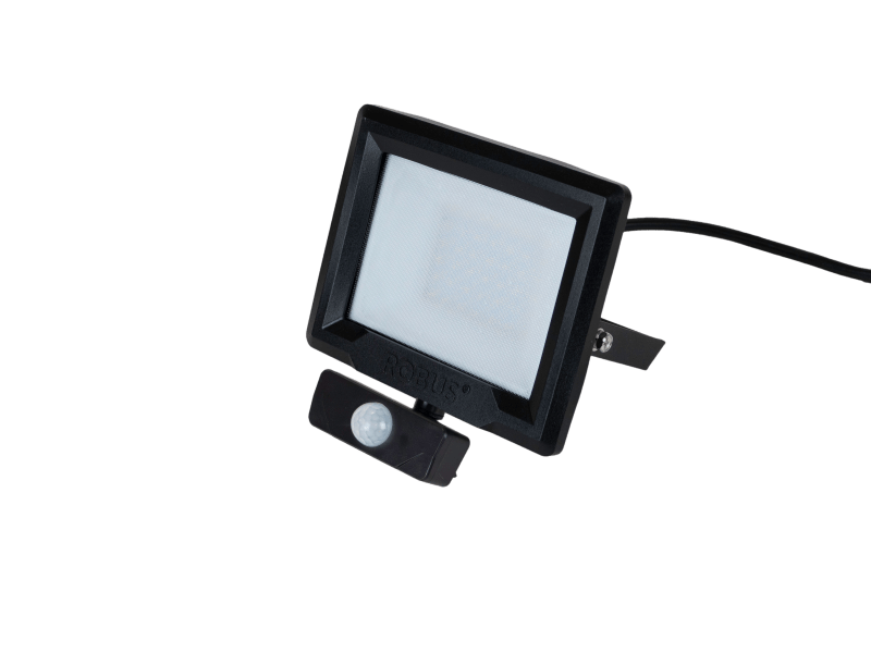 Robus HiLume 20W LED flood light with PIR, IP65, Black, 4000K, c/w 1m flex - RHL2040P-04